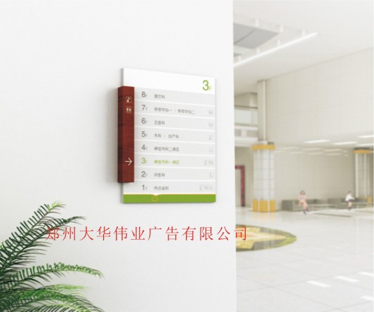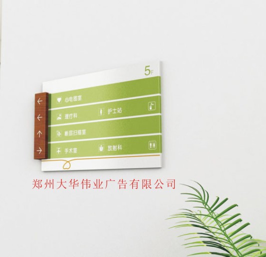 此次大华伟业与桃源县人民医院的标识导向系统的合作上,坚持“以人为本”的观念,体现人文精神,以绿色为主调,代表健康、生命、活力。将绿色和巧克力色相搭配给人一种舒适自然温馨的感觉,并且两者颜色的搭配可以瞬间吸引住人的眼球,起到强调作用。另外再考虑到医院的独特环境,采用了简单的设计,使人们能一目了然的看到自己想要的信息,充分的体现了视觉导向功能。