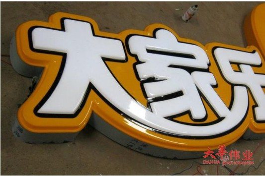 铁皮烤漆包边吸塑发光字: led模组作为灯源,经过吸塑成型的亚克力面罩作为面板,底板和四周围边都采用经过焊接、打磨、烤漆的铁板。(透光性好,制作较为复杂,周期长,牢固性好,适合做大字和工程) 底板及四周围边材料可选择铁皮、镀锌板、铝板、不锈钢板;面板可选用亚克力板;材料的选择、led的排列密度、安装的难度等因素都会影响发光字的整体报价
